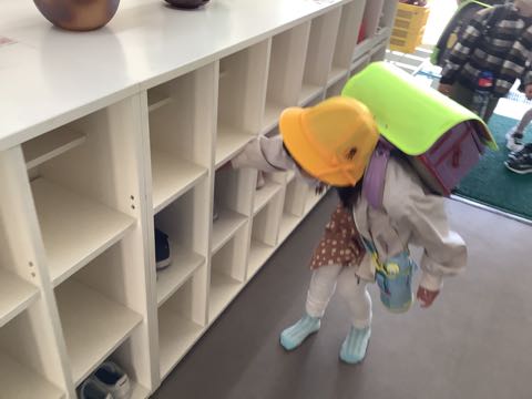 一年生が元気に登校しました。自分の靴箱の場所を覚えている子がたくさんいました。