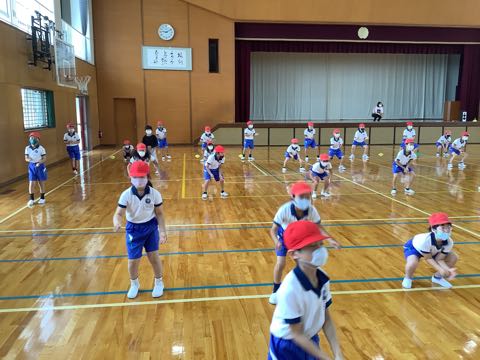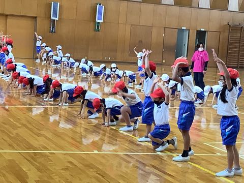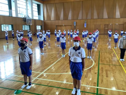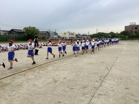3、4年生が運動会に向けて、ラジオ体操と行進の練習をしました。