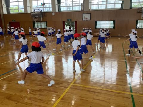 全体練習が始まる前に、個人練習を進めていたようです。6年生は、さすがです。5年生も、がんばってます。
