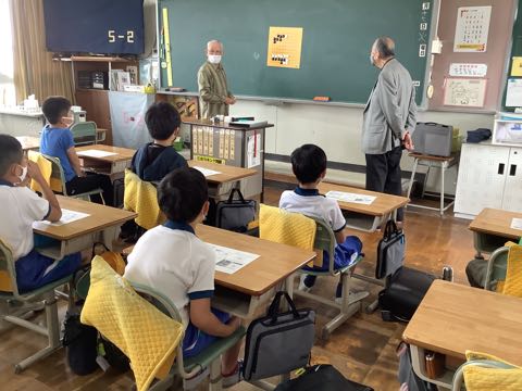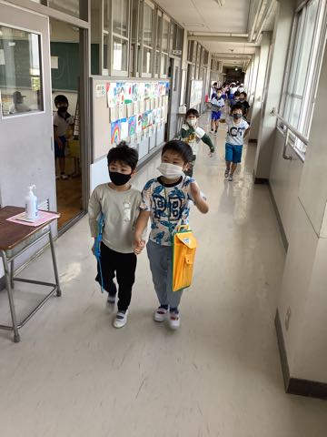 2年生が1年生に、吉田小学校の校舎内を案内しました。