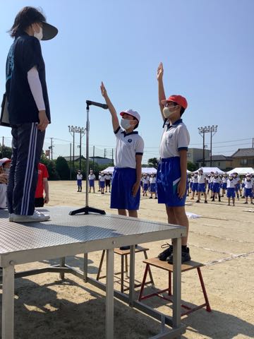 開会式では、ラジオ体操や校歌、選手宣誓の練習をしました。