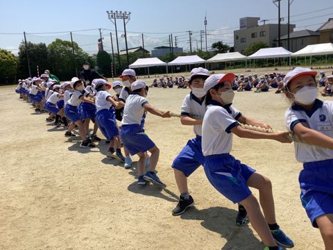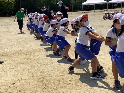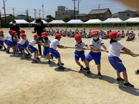 赤白対抗綱引きは、赤組の全勝でした。練習では、白組のほうが勝っていたのですが…。勝負はわからないものです。