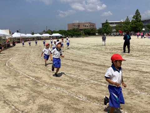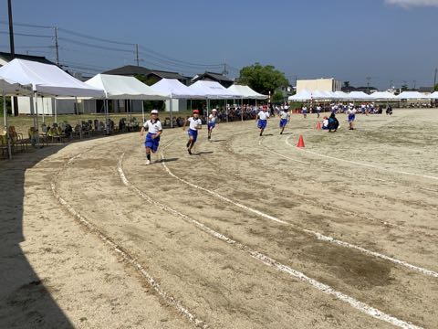 1、2年生徒競走は、緊張した顔で入場する子が多かったですが、全力で走ることができました。
