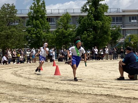 赤白対抗リレーは、男女とも抜いたり抜かれたりの、白熱したレースとなりました。