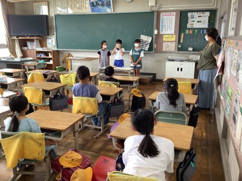 保健委員会では、全校に呼びかける内容を練習しました。4〜6年生で力を合わせて、学校生活に活気を与えています。