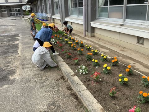 朝から降っていた雨が上がり、掃除の時間は外庭掃除ができました。花壇の草取りをがんばっています。