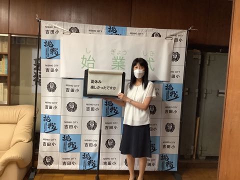校長からは、夏休みに学校の中で変わったところがあること、吉田っ子に当たり前の感じのいいあいさつや履き物の整頓を心がけることで、切り替えができることなどの話がありました。