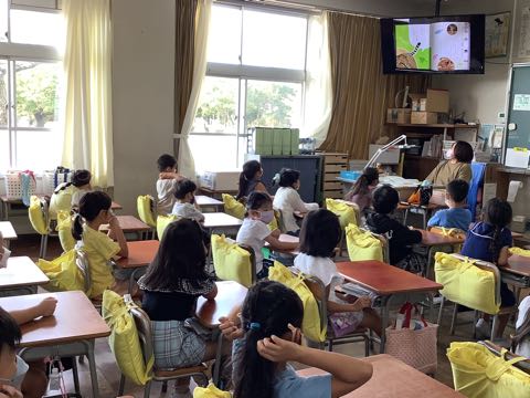 その後、教室では、読み聞かせボランティアのみなさんによる、本の読み聞かせが行われました。
