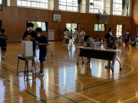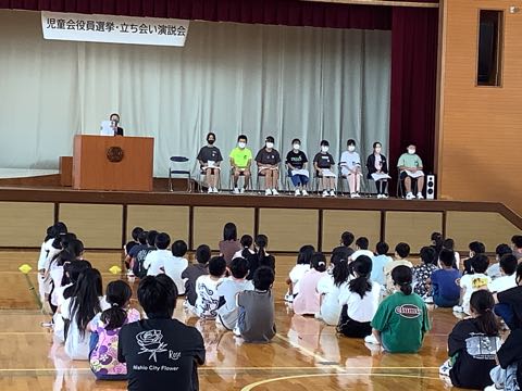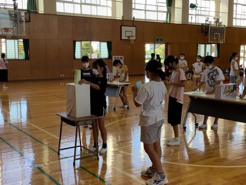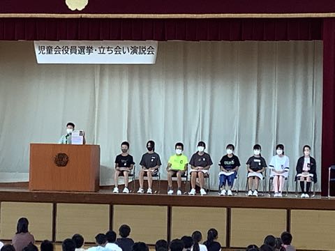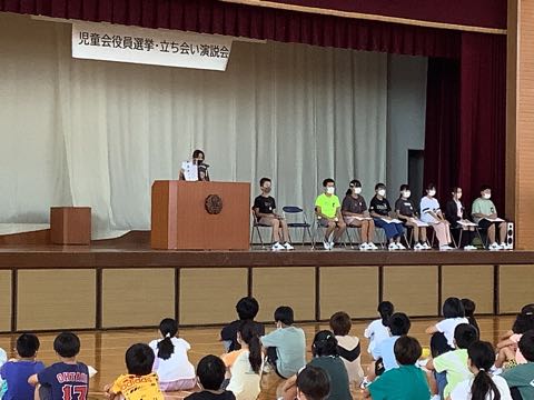 児童会では、後期の役員を決める選挙が予定されています。立候補者も、今の役員達と一緒にあいさつ運動をしました。