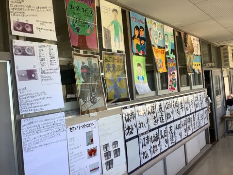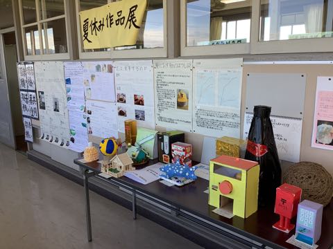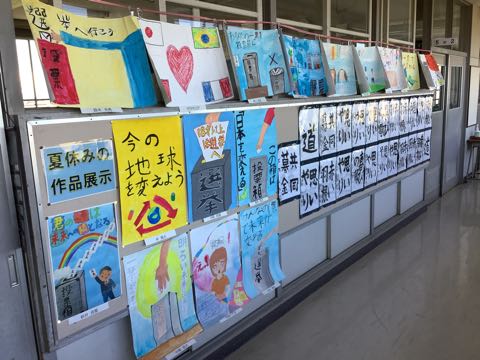 夏休みの課題の作品が、それぞれの教室のろうかに掲示されています。今年もコロナ禍で、保護者の方の参観は控えさせていただきましたが、ご家庭でのご支援、本当にありがとうございました。