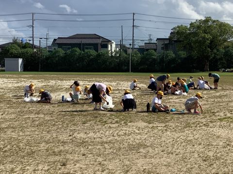 早めに終わった委員会は、運動場の草取りを手伝いました。4〜6年生のみなさんが、学校の力となっています。