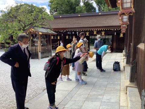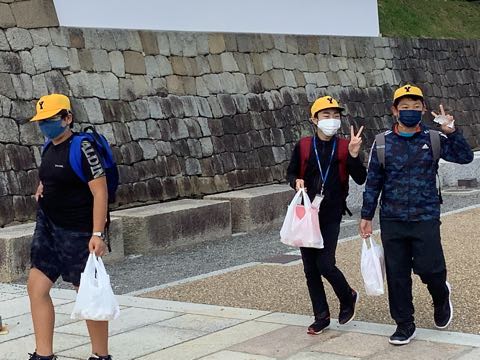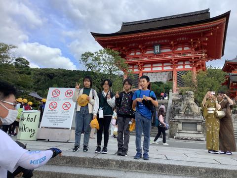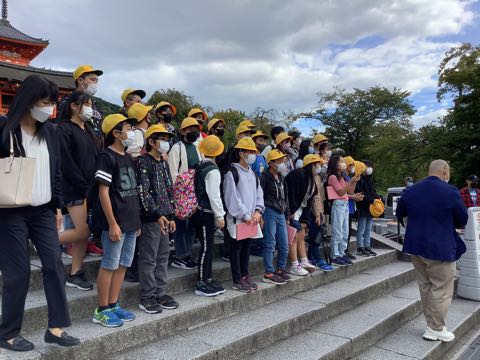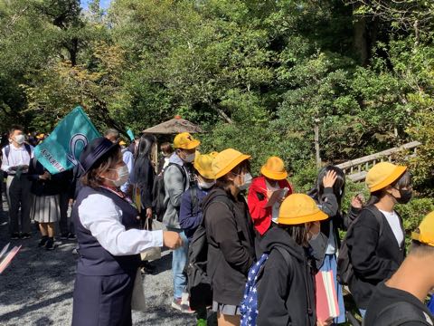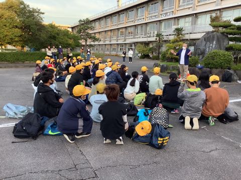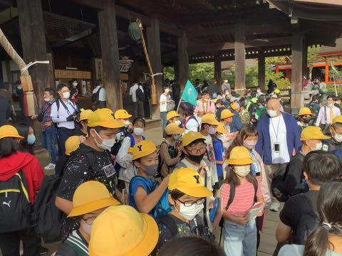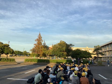 気持ちのよい青空の下、朝早くから集合した6年生は、今日から京都・奈良へ修学旅行に出かけます。