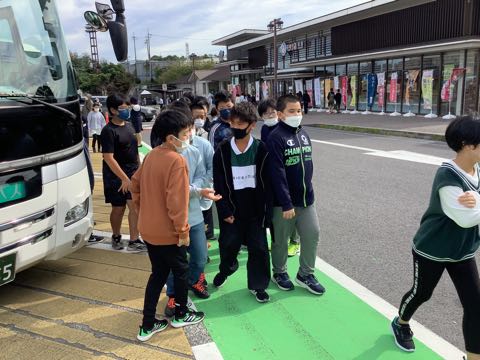 出発式の後、バスに荷物を載せて、いよいよ出発です。