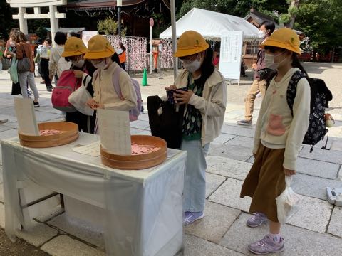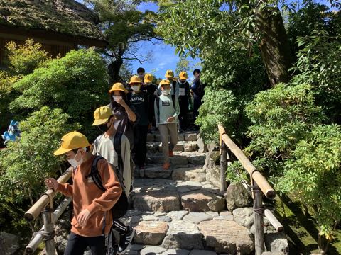 休憩地で隣のクラスの友達とちょっと会えることも、楽しいようです。体調が悪くなった子もおらず、みんな元気です。