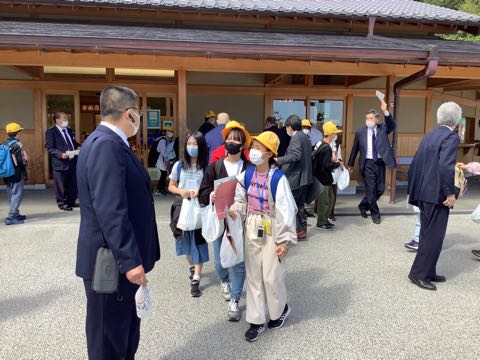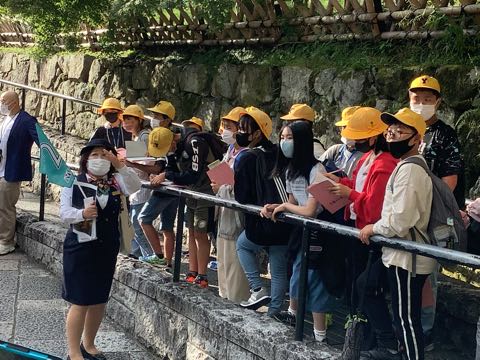 ガイドさんの説明を聞くときは、みんな真剣にメモをとってます。