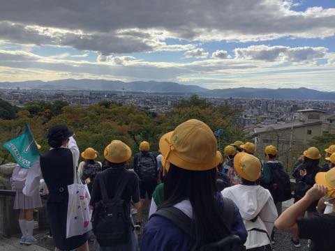 高台にある清水寺からは、京都の街並みが見られます。京都タワーも見えました。