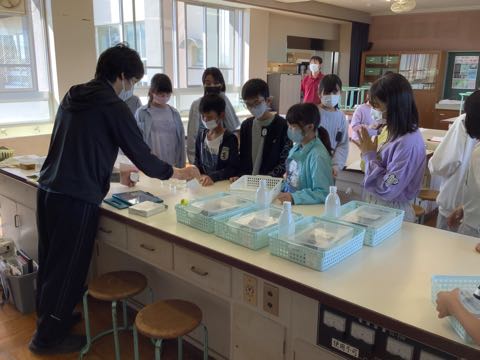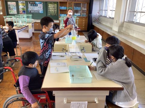 理科の水溶液の学習で、実験をしました。予想を立てて実験で確かめました。ノートに考えをまとめながら、じっくりと考えることができました。