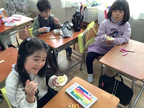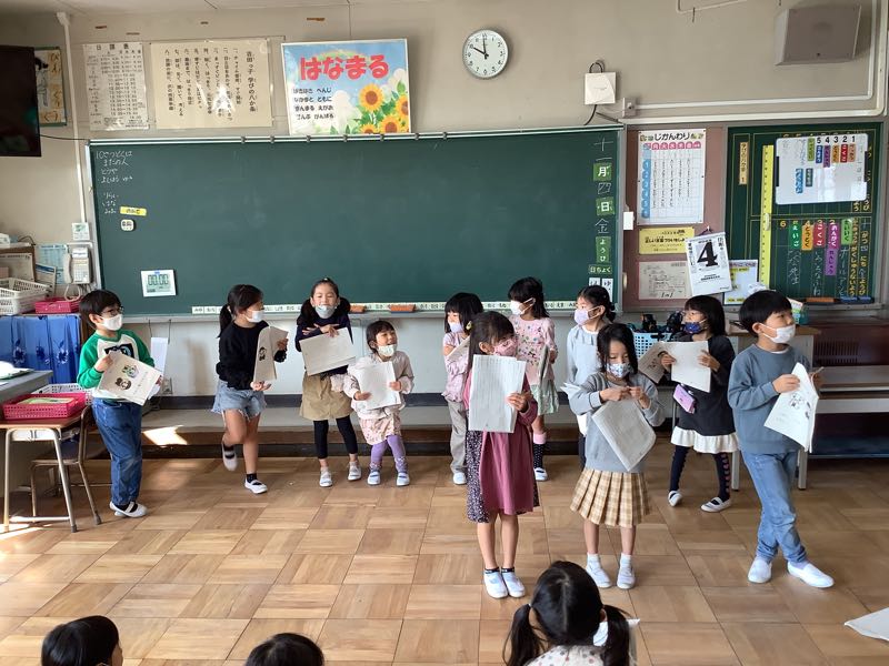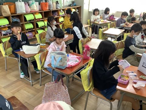 一年生の教室から楽しそうな声が聞こえてきました。