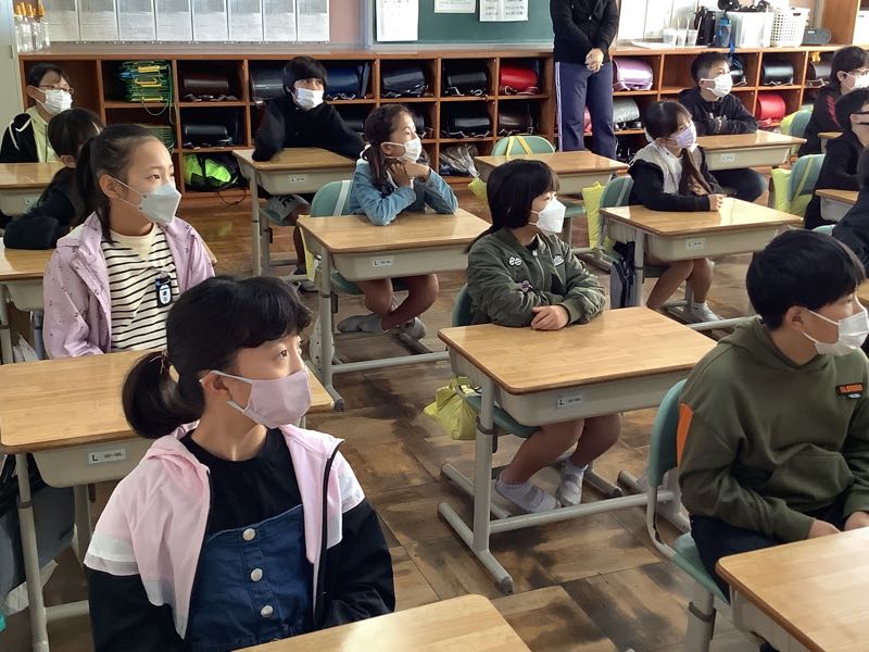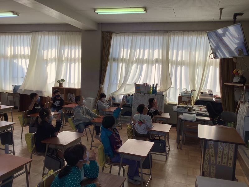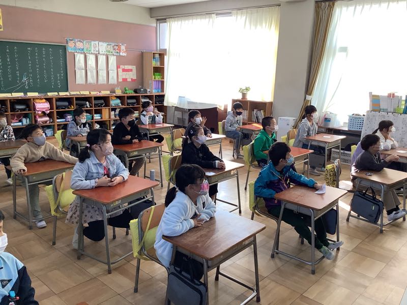 教室で話は真剣に聞き、クイズはとても楽しそうに参加していました。