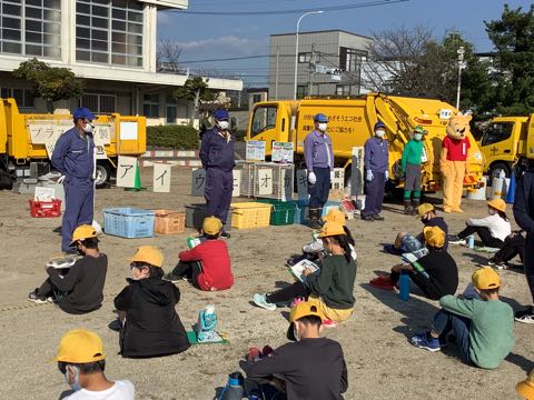 4年生は、社会科の授業でごみについて学習しています。今日は、市役所から「レスキュー530」のみなさんが来て、ごみについていろいろ教えてくださいました。