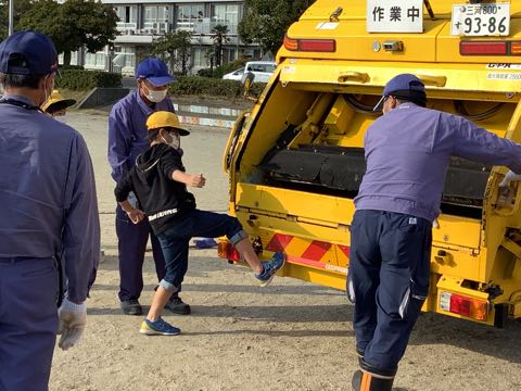 隊長からパッカー車の説明をしていただき、博士から事前に配られたクイズの答えを教えていただきました。