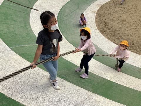 遊具でも、いっぱい遊びました。笑顔満開です。