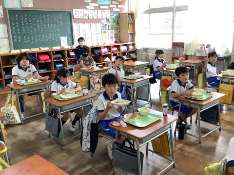 おいしい給食に、みんな笑顔いっぱいおなかいっぱいです。1年生は・・・