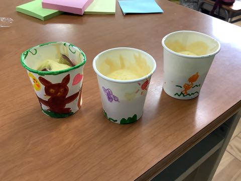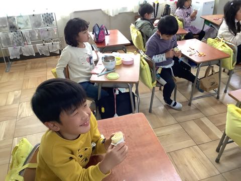 校外学習の予備日だったので、お弁当でした。そして、生活科で栽培したさつまいもを使ったカップケーキを作って食べました。