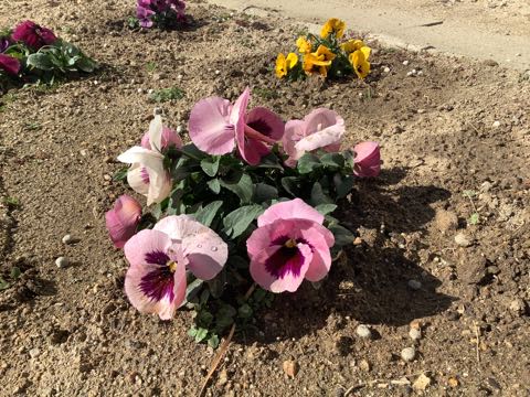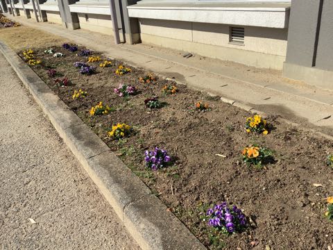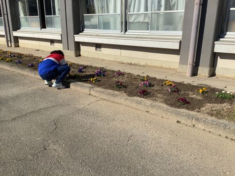 そんななか、委員会活動をする姿がありました。緑化委員会の6年生でした。校舎南側の花壇のパンジーに水をあげていました。