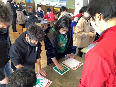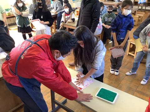 卒業を控えた6年生のために、おやじの会のみなさんが手形作りのプレゼントをしてくださいました。素敵な色紙が用意され、一人一人が手形を押していきました。和やかな雰囲気の中、おやじの会のみなさんと楽しい時間を過ごすことができました。