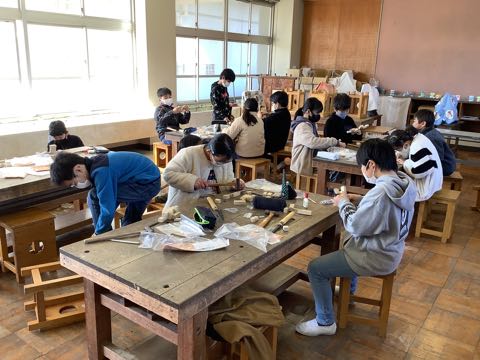 4年生は、図工の時間に金づちやノコギリを使って、作品作りをしました。ノコギリで木を切るのに、苦戦していました。