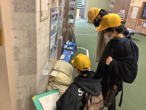 3年生は、総合学習で防災について学んでいます。学校にいるときにもしも大きな地震が発生したらどうするか?という視点で、学校内の危険な場所を調べました。「理科室の棚の近くは危ないね」「頭を守ってとにかく運動場に逃げよう」など、自分の命を自分で守る方法をまとめました。安全な避難について、2年生に発表する予定です。分かりやすく伝えられるように、グループで発表の仕方を工夫しています。