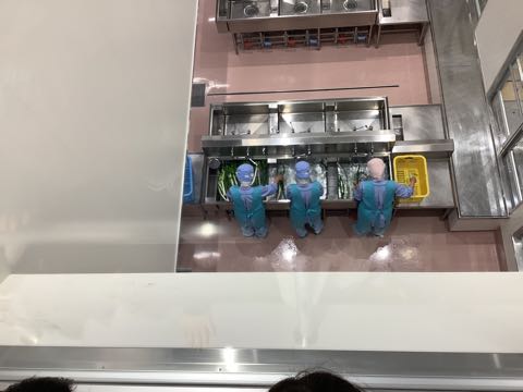 いよいよセンター内を見学です。ネギを洗うところや、お鍋で煮ているところを見学しました。
