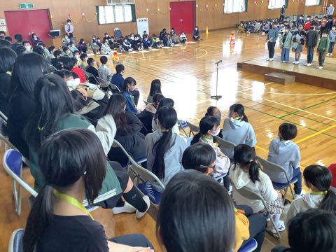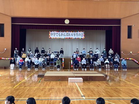 5年生が計画、運営した6年生を送る会「中学校でもがんばれ6年生の会」が開かれました。