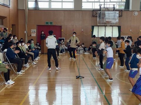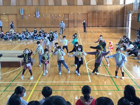 4年生は クイズとダンス。懐かしい「恋ダンス」に、6年生が飛び入りで一緒に踊ってくれました。