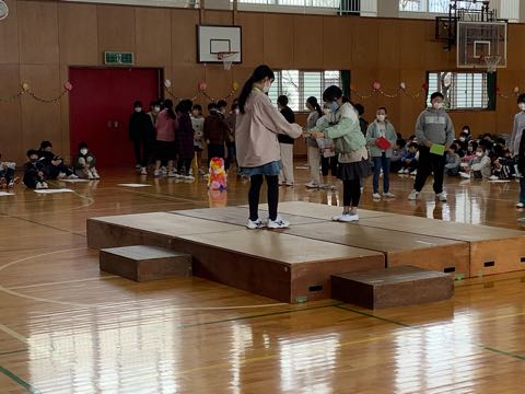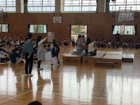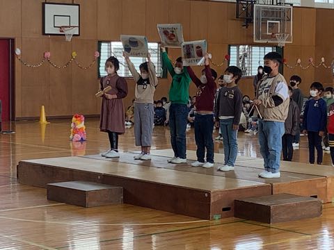卒業する6年生へのプレゼントとして、各学年から出し物がありました。