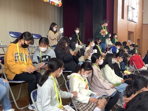 そして、在校生から卒業生へ、手紙のプレゼントがありました。もらった手紙を微笑みながら読む卒業生がいっぱいでした。