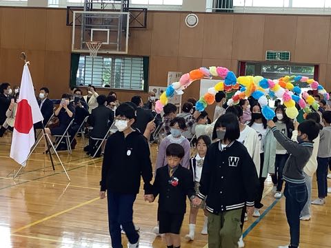 その後、入学式・始業式が始まりました。新入生の入場です。