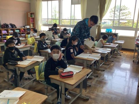 5年生は、初めての家庭科の授業がありました。どんな勉強をするのか、わくわくどきどきです。