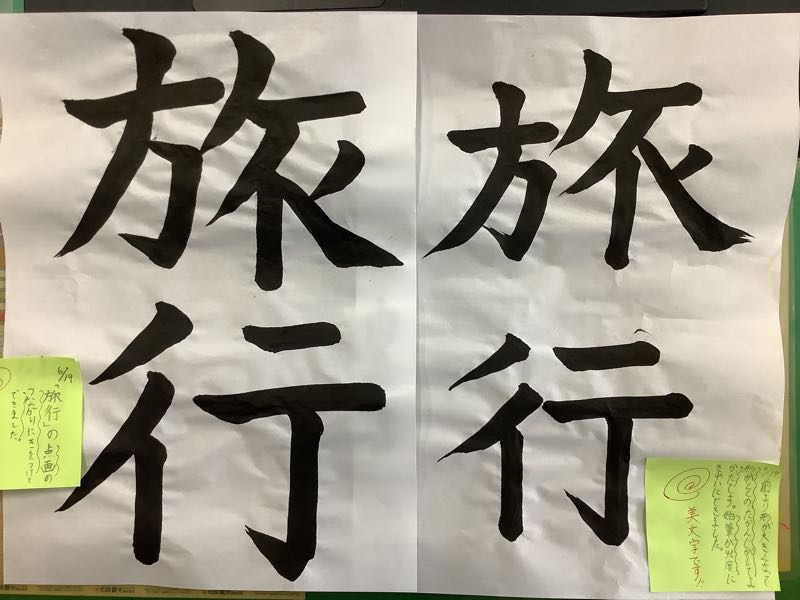 6月は「点画のつながりに気をつけて書こう」というめあてで「旅行」の文字の書き方を勉強してきました。