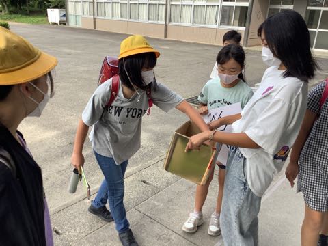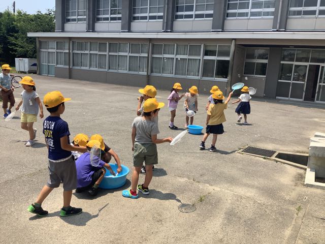 1年生は、生活科の授業でシャボン玉に挑戦しました。ストローだけでなく、うちわや紙の筒などいろいろな物を使って試しました。