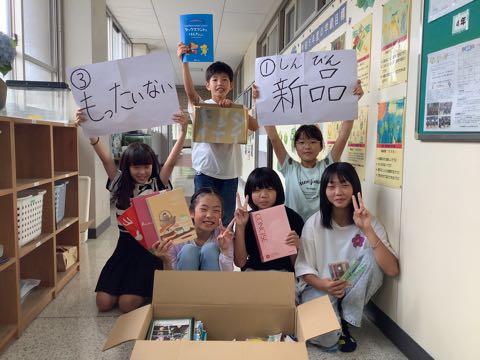 児童会が「もったいないプロジェクト」として、家にある「使っていないけど、捨てるにはもったいないもの」を集めました。