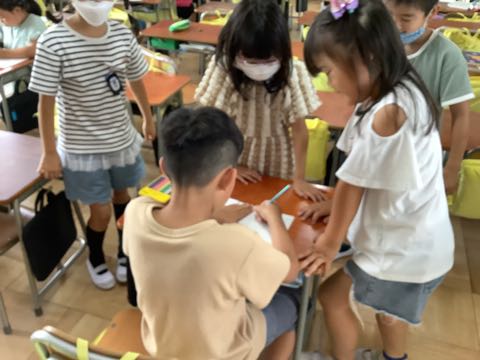 「人に見てもらいながら書くのはすごく緊張したよ。」「友達に丸をうってもらえたらうれしかったよ。」(子どもたちのつぶやきより)