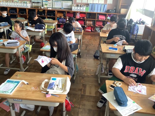 家から、消しゴムやノートなど新品の文房具を持ってきてくれた子がたくさんいました。