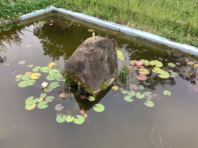 メダカ池では、スイレンの花が咲いています。