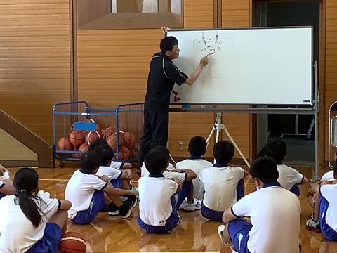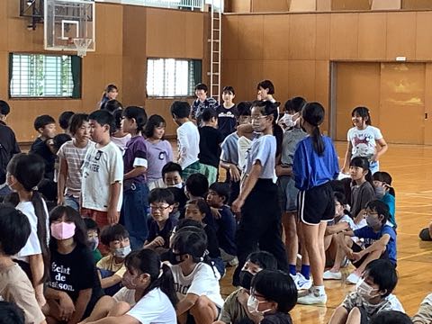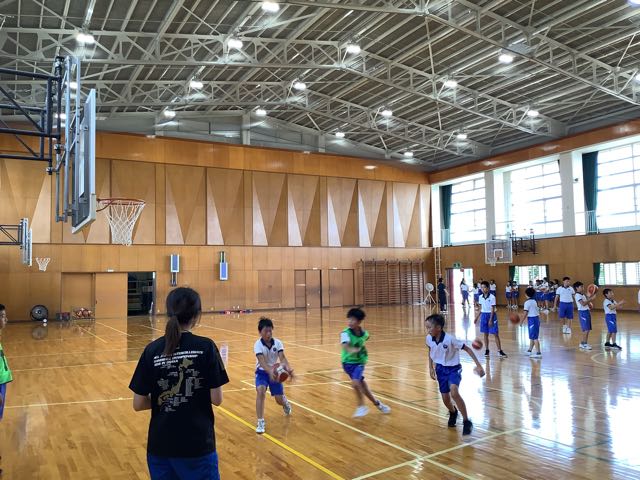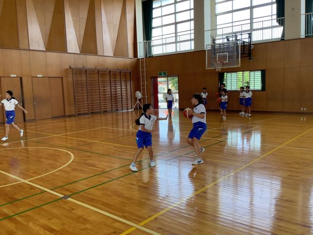 授業後の体育館では、「ナイスシュート」、「ファイト」など、元気な声が飛び交っています。今日も、バスケットボール部が男女ともに、練習に励んでいました。7月下旬の大会に向けて、チームとして声をかけ合いながら、がんばっています。