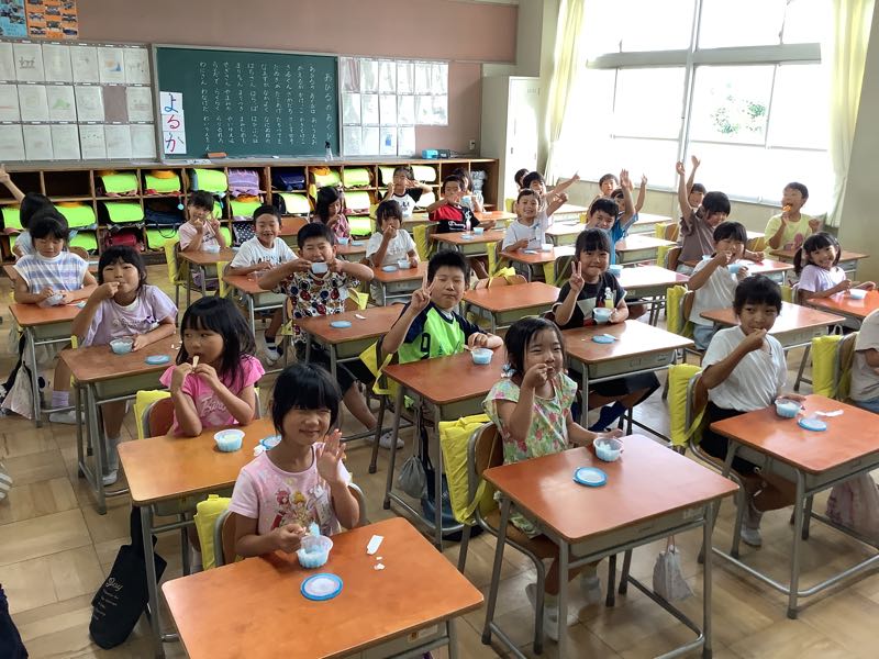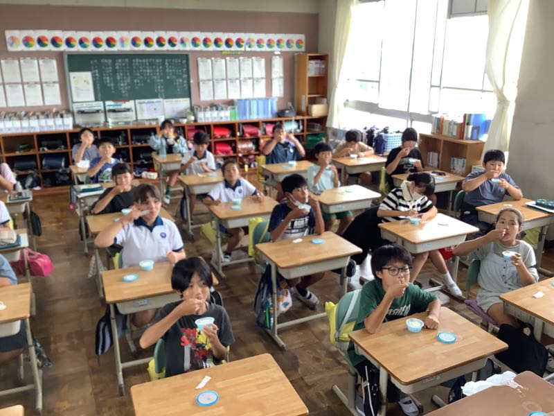 PTAの方々から1学期がんばったご褒美として、冷たいデザートをいただきました。PTAのみなさん、ありがとうございます!!と感謝を込めてパクリ!