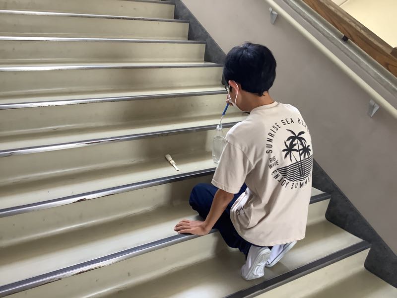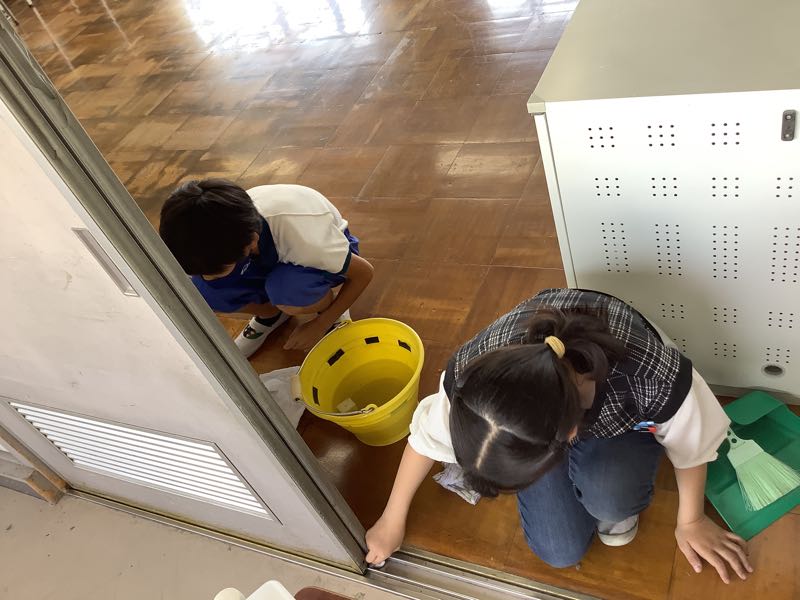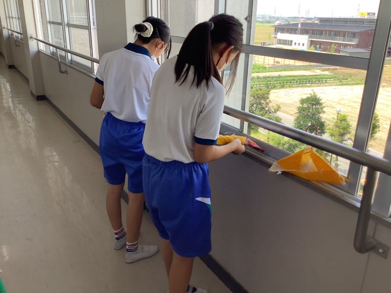 家庭科の授業でクリーン大作戦に取り組んでいました。教室、廊下、階段、特別教室、プールなど、自分たちで汚れた場所を見つけ、掃除道具を工夫しながらピカピカにしてくれました。