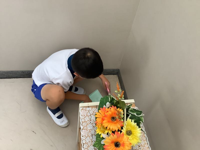 子どもたちが用意した掃除道具を少し見せてもらいました。工夫がいっぱいですね。