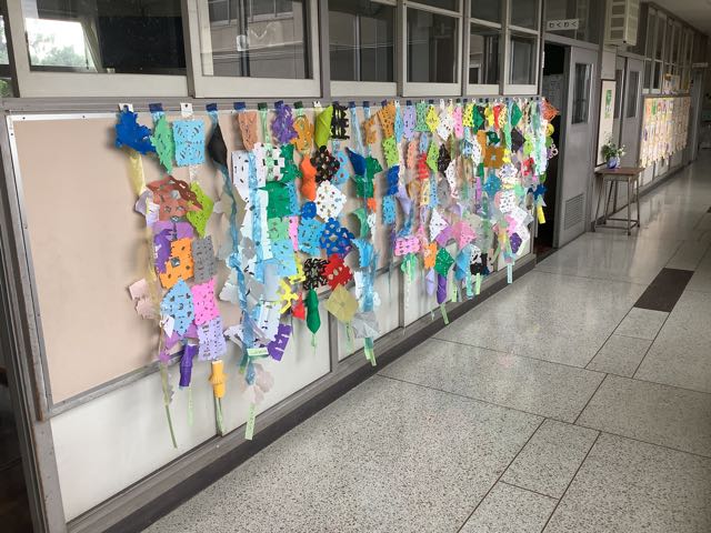 今日は七夕です。1年生が作った七夕飾りが、季節を感じさせてくれました。